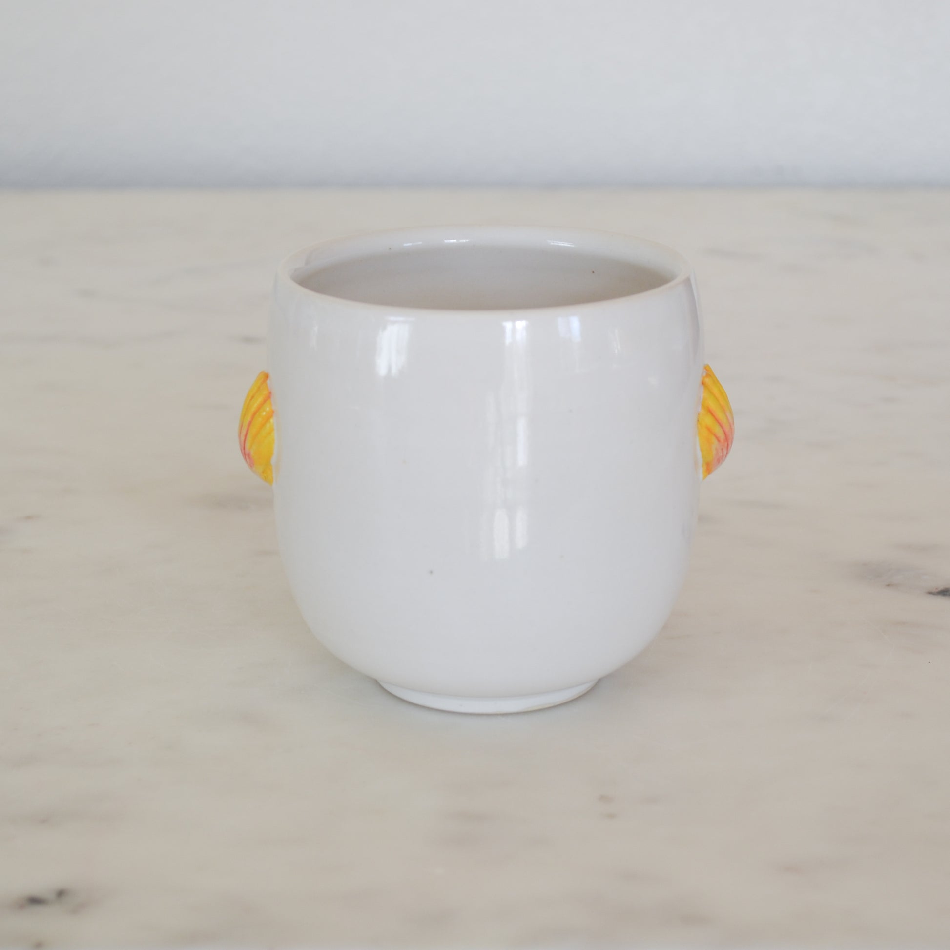 This Sunrise Mug is wheel thrown, hand painted, crafted with care by Courtney Puig. It holds around 16oz and features two Sunrise Shells. It is dishwasher and microwave safe. Each piece is wheel thrown and varies slightly. Width: 4", Height: 4" Handle Interior: 2.125"